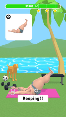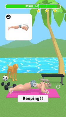 游戏场景设定在一个阳光明媚的健康海滩,玩家需要模仿游戏指示的标准动作来完成训练。这种身临其境的体验让健身变得更加真实有趣,帮助玩家在游戏中也能获得实际的健身效果。