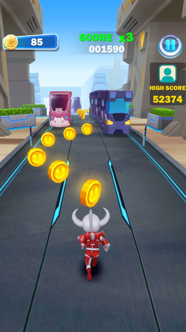 《奥特曼冲冲冲》是一款充满趣味性的休闲跑酷游戏,玩家将化身奥特曼在赛道上展开一场别开生面的冒险之旅。与传统跑酷游戏不同,本作弱化了战斗元素,转而强调轻松愉快的收集玩法。你无需肩负保卫地球的重任,只需专注于在奔跑过程中收集金币、提升积分,逐步解锁更多造型各异的奥特曼角色。简洁明快的操作方式搭配鲜艳亮丽的画面风格,让这款游戏适合各个年龄段的玩家体验。