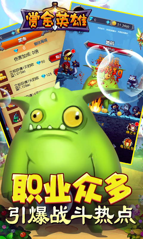赏金英雄手游是一款充满魔幻色彩的休闲放置类游戏,为玩家带来轻松有趣的冒险体验。在这款游戏中,玩家将扮演一位肩负拯救世界使命的英雄,带领十位顶尖强者踏上对抗魔族的征程。游戏融合了多种玩法系统,包括角色培养、装备强化、关卡挑战等,让玩家在享受畅爽操作的同时,也能体验到策略搭配的乐趣。无论是喜欢休闲放置还是追求战斗快感的玩家,都能在这里找到属于自己的乐趣,欢迎各位感兴趣的朋友下载试玩。
