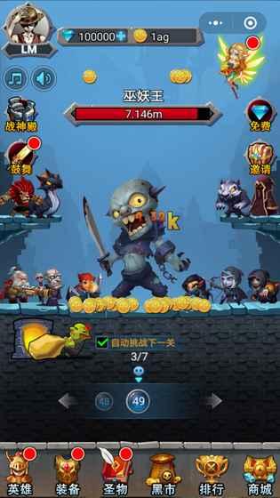 游戏采用轻松便捷的放置类玩法,操作简单易上手,只需点击屏幕即可完成大部分操作,让玩家在忙碌之余也能享受游戏乐趣。游戏背景设定在一个充满魔幻色彩的异世界,玩家将扮演救世主的角色,肩负起拯救世界的重任。通过不断升级英雄和装备,提升整体战力,最终战胜邪恶势力,还世界以和平。游戏还加入了丰富的社交元素,玩家可以与其他玩家组队挑战,共同体验冒险的乐趣。