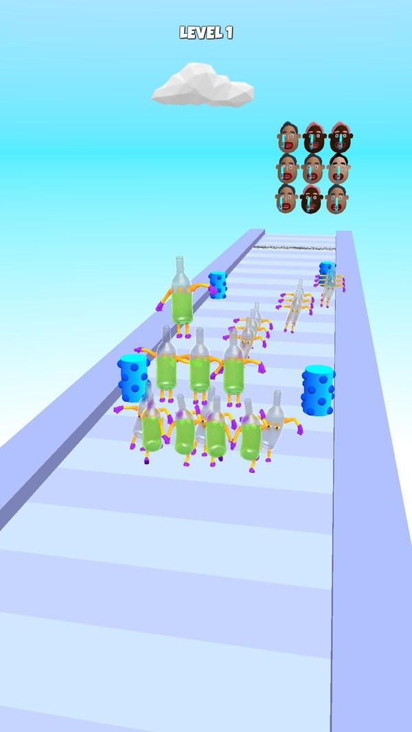 游戏开始时会出现一个造型夸张的瓶子人角色,通过左右滑动屏幕控制其在赛道上灵活移动。保持注意力高度集中,一旦掉出赛道就会浪费宝贵时间,这对玩家的反应速度是极大考验。面对突如其来的障碍物时,需要快速做出判断并采取闪避动作,只有保持冷静才能确保顺利通关。随着游戏进程推进,赛道难度会逐渐提升,带来更具挑战性的跑酷体验。