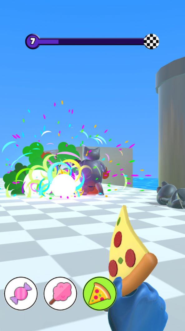 在游戏中只需选择敌人想要的食物,点击敌人并喂食怪物,完成不同的任务获得更多的食物。