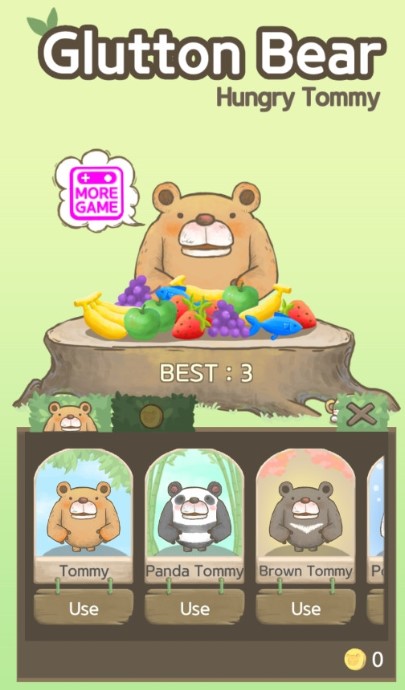 另外游戏也提供了排行榜让玩家挑战,可以与全球玩家一较高下,看看谁的小熊最能吃。快来试试看自己最高可以让Tommy熊吃下几盘的食物吧,挑战自己的反应速度和策略能力。至少还能有一点不同的视觉感受,游戏中的每个场景都经过精心设计,带来赏心悦目的视觉体验。结束关卡后都可以拿取少量的金币,这些金币可以用来解锁更多有趣的内容和道具,让游戏体验更加丰富多彩。