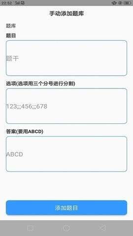 题库制作助手1.2.4官方最新版本是一款功能强大的移动端题库制作工具,让用户能够随时随地通过手机轻松创建和管理题库。该软件支持多种文件格式导入题目,包括WORD文档、TXT文本以及Excel表格,极大提升了题库制作的灵活性。如果您手头是doc格式文档,只需按照指定格式调整后另存为TXT文件即可顺利导入。为了方便用户快速上手,软件还提供了详细的文档模板下载功能,您可以将模板同步到电脑上,按照要求填写题目内容,最后上传至软件进行处理,整个过程简单高效。