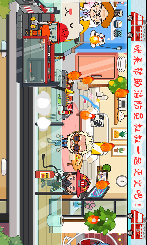 2. 互动元素:游戏中有丰富的互动元素,如驾驶消防车、使用灭火工具等。
