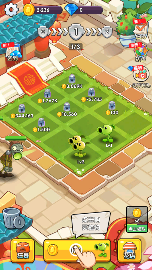简简单单自由搭配起来,让您的植物能够轻松的击败所有入侵的僵尸们。