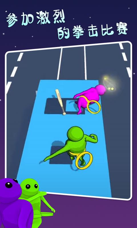 游戏提供丰富的自定义选项,玩家可以自由选择参与人数、战斗场景和游戏模式。操作方式简单直观,通过虚拟摇杆和按键组合,可以做出冲刺、跳跃、投掷等多种动作。在战斗中,你可以推搡、拉扯、冲撞对手,或是巧妙利用场景中的机关和陷阱来取得优势。游戏场景设计极具创意,从传统擂台到繁华街道,从旋转摩天轮到危险工地,每个场景都有独特的互动元素。除了经典的乱斗模式,游戏还提供团队竞技、冒险闯关等多种玩法,满足不同玩家的需求。