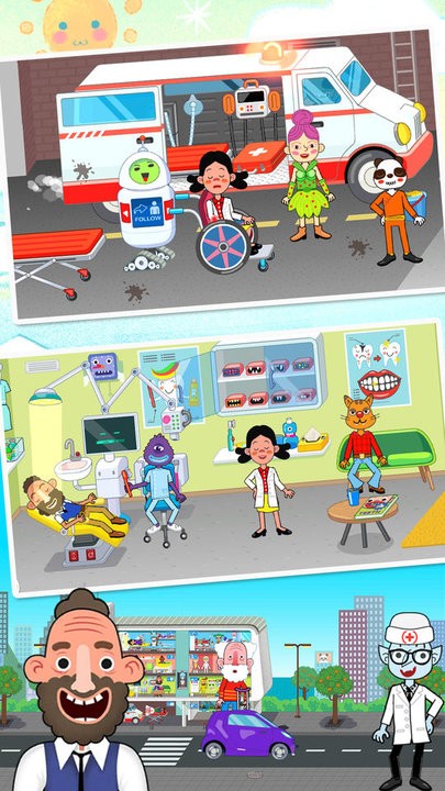 欢迎来到托卡小镇超级医院,这是一个专为小朋友设计的医疗模拟乐园。在这个庞大的医疗中心里,孩子们可以尽情探索各种医疗场景,使用丰富的医疗器械和药品。游戏提供了超过50种医疗道具和10个特色科室,让孩子们在角色扮演中学习医疗知识。玩家可以跟随可爱的机器人助手一起巡诊,在急诊室处理突发状况,或是在手术室完成精密操作。每个场景都经过精心设计,既保留了医疗工作的专业性,又充满了童趣的互动元素。