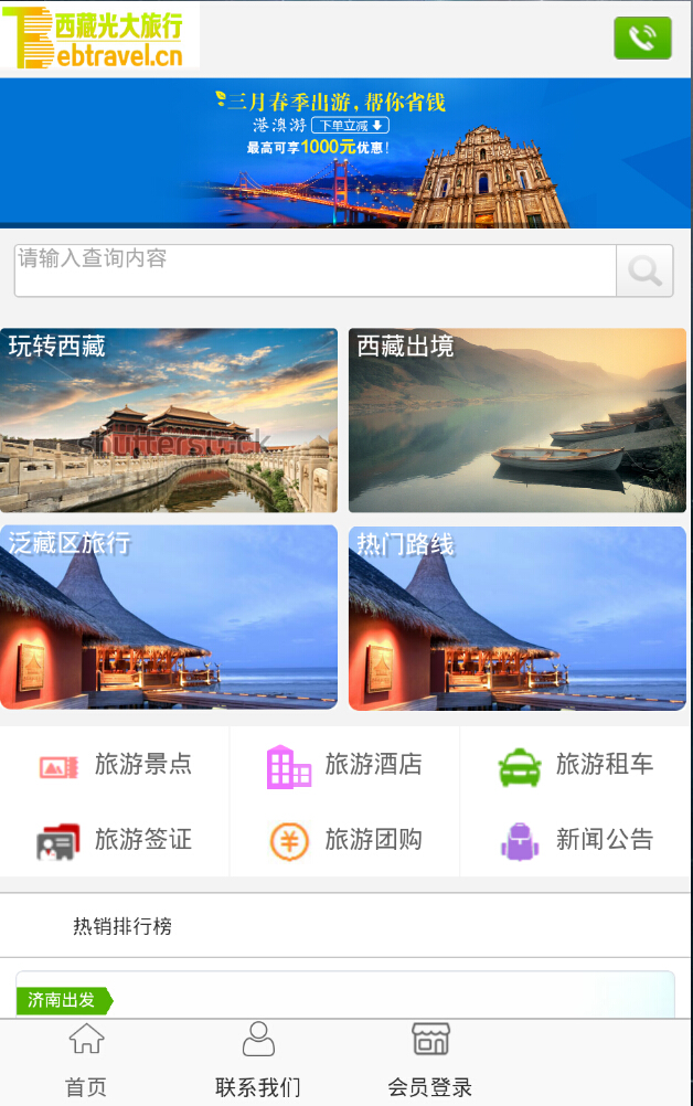 提供旅游团购、租车、签证以及酒店服务,更有独家优惠活动和会员专享福利