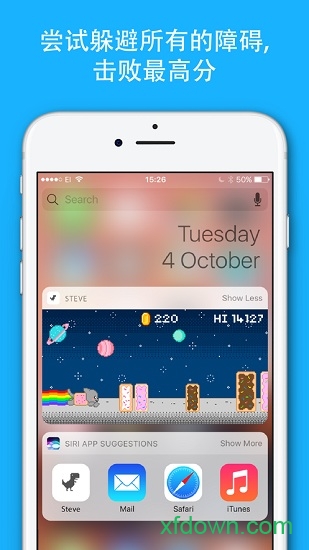 点击屏幕开始游戏,打开通知栏就能打发时间,但是小心不要误触呦!游戏过程中要注意控制跳跃节奏,避开各种障碍物才能获得高分。