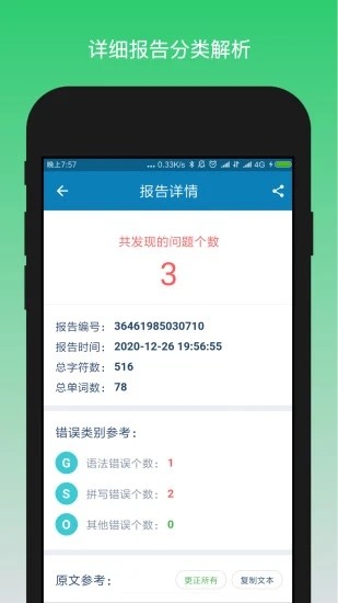 错误分析与科学释义功能为每一处修改都提供了详细的解释说明。软件不仅会指出错误所在,还会对错误类型进行分类,并给出相应的语法规则解释。通过这种方式,用户可以系统性地了解自己常犯的错误类型,有针对性地改进英语写作能力。软件还提供丰富的例句和练习,帮助用户巩固所学知识。