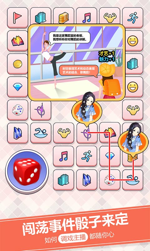 新爱上主播是一款美少女主播养成的休闲模拟游戏。在这款游戏中玩家将作为资深的经纪人,将自己看中的二次元美少女培养成超人气的主播,获得超级丰富的奖励。想要成为人气主播,首先必须要有很强的业务能力,不管是唱歌跳舞还是美妆打游戏,都需要好好培训学习一下,多才多艺才能获得更多的粉丝支持哦。游戏新增加了随机事件内容,玩家通过投掷骰子来触发不同的事件,帮助主播快速成长。