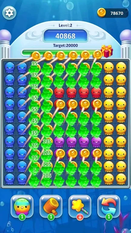 海洋大爆炸是一款以海洋为主题的休闲消除小游戏。在海洋大爆炸中玩家将进行简单的消除小游戏,玩家点击三个或者以上的一样颜色的方块进行消除,一次性消除的数量越多就能够获得更高的分数,每一个关卡都有任务需要完成,完成之后才能够进入到下一关。游戏中有很多非常实用的小道具提供给玩家,在遇到困难的时候可以使用道具来帮助自己。海洋大爆炸非常适合空余时间玩一玩哦。