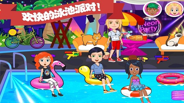 在迷你城堡万圣节中,你可以尽情享受多种多样的玩法。如果你喜欢热闹的派对,不妨前往霓虹舞俱乐部,与朋友们一起跳舞狂欢,感受夜生活的激情。或者你也可以选择参加泳池派对,在清凉的水中嬉戏,享受阳光与欢乐。游戏还提供了浪漫的恋爱模拟玩法,你可以通过互动培养一个完全符合你心意的恋爱对象,体验甜蜜的恋爱时光。此外,你还可以乘坐旅游巴士探索城堡周边的风景,品尝美味的餐车小吃,与朋友们一起欣赏霓虹灯的绚丽光芒!