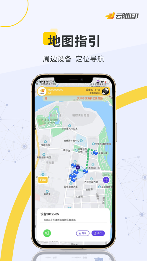 提供云随印打印设备在周边地图显示功能,智能判断最近设备并可提供导航,对于用户十分友好方便。系统会实时更新设备状态,显示可用打印机位置,避免用户白跑一趟。地图界面清晰明了,支持多种导航软件跳转。