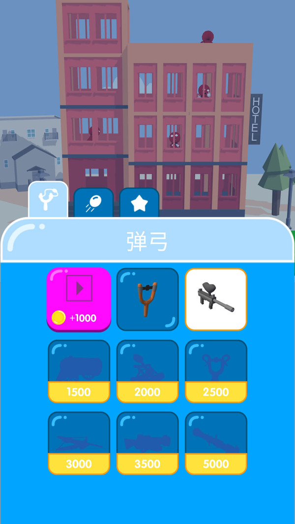 使用弹弓发射子弹时要注意抛物线轨迹,精准计算才能击败躲在角落和暗处的狡猾敌人;