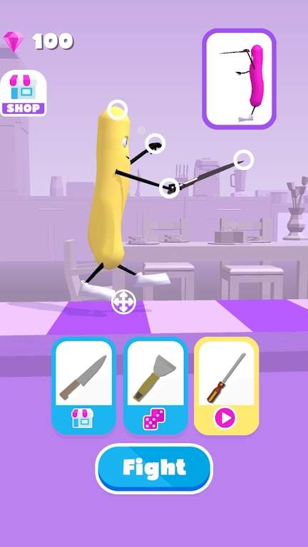 很多场景和关卡都会遇到不同的对手,让你充分发挥自己的实力和操作级别。游戏采用直观的触屏操作,通过简单的滑动和点击就能完成各种战斗动作。完成调整后,单击开始战斗。如果你的战斗姿态足够强大,你可以击败对手并赢得。游戏还设有连击系统,连续完成特定动作可以触发酷炫的必杀技。拖动调整香肠各部位姿态,选择武器,部分武器解锁后才可使用。随着等级提升,还能解锁更多特殊技能和装备。