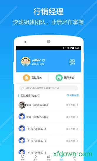 行销经理团队管理:独创的"三级裂变"团队架构,通过专属二维码实现成员几何级增长,佣金计算器实时预估团队收益,成员动态自动推送提醒,支持批量导入通讯录快速建群。
