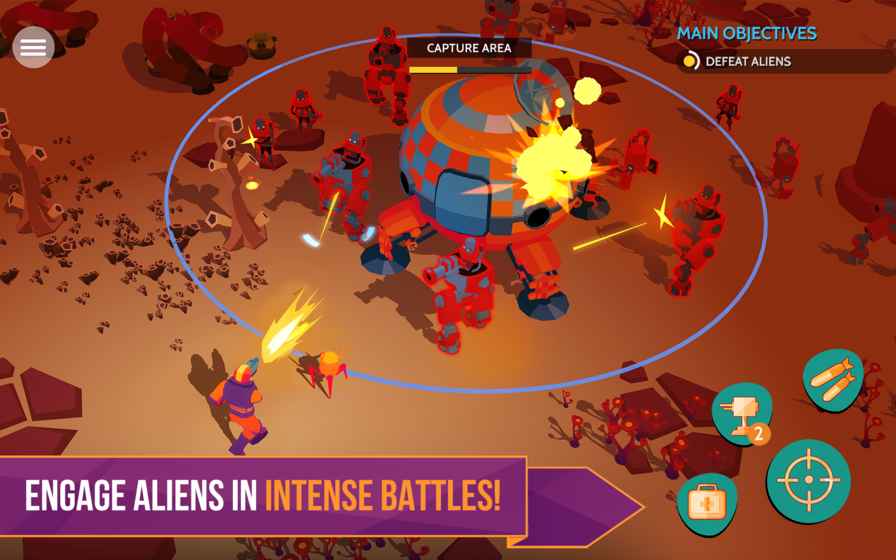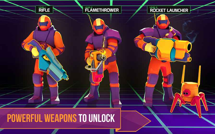 【战术射击】创新的双摇杆操控系统完美适配移动端,既保留了硬核射击游戏的精准要求,又加入了慢动作闪避等创新机制。面对成群的外星生物时,合理的走位比盲目射击更重要。