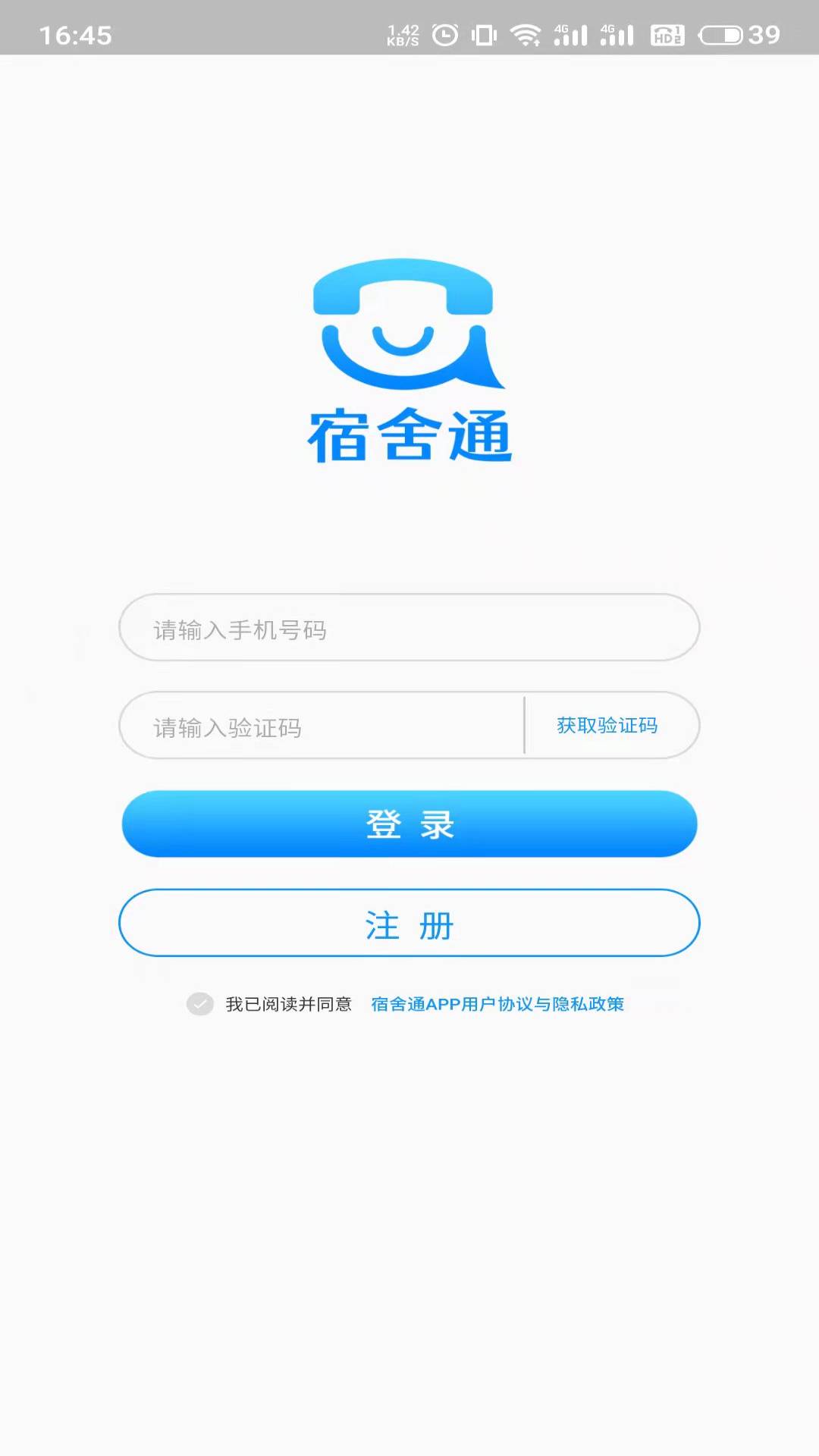 宿舍通app功能丰富,操作简单。软件启动后,系统会在1秒内快速进入登录界面。家长只需使用已绑定的手机号及收到的验证码即可完成登录。登录成功后,用户将进入系统主界面,该界面包含四个子页面:对话主页、服务页、家人页和个人页。