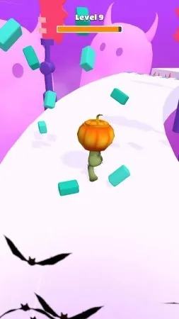 边跑边继续收集南瓜。你的南瓜头会变大,也意味着你的战斗力会变强。随着南瓜头的增大,玩家可以解锁更多特殊技能,比如冲刺或跳跃高度提升。游戏还设置了阶段性成长系统,让收集过程更具成就感。