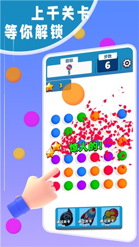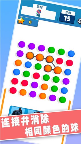 各种简单轻松游戏关卡都在游戏里面等你体验,将同样颜色的小球连接起来消除即可。