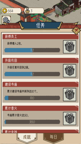 让更多的人来烧香拜佛,还可以住宿获取收益,解锁更多行业与商铺,扩大自己的商业帝国。通过多元化经营,将小小的寺庙发展成远近闻名的佛教圣地。