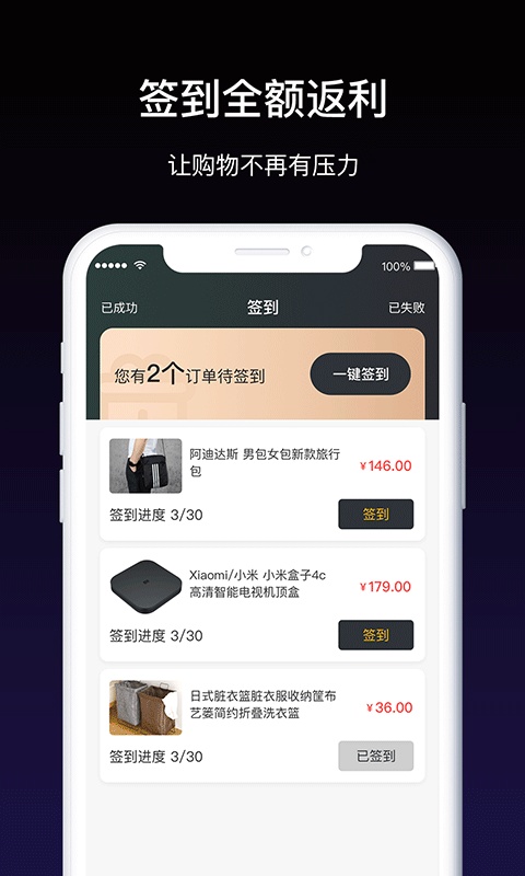高额返利机制:创新的签到返利模式,让您在享受购物乐趣的同时,还能获得实实在在的现金返还。