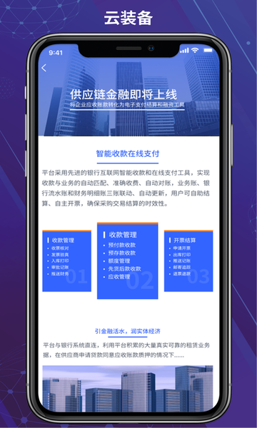 云装备电子商务平台是国内领先的设备租赁综合服务平台,专注于为建筑施工企业、设备供应商及个人用户提供一站式解决方案。平台以设备租赁为核心业务,同时整合材料租赁、在线商城、供应链金融等多元化服务,通过智能化系统实现供需精准匹配。采用区块链技术确保交易安全,配备专业客服团队提供全程服务支持,帮助用户降低运营成本,提升资源利用效率。
