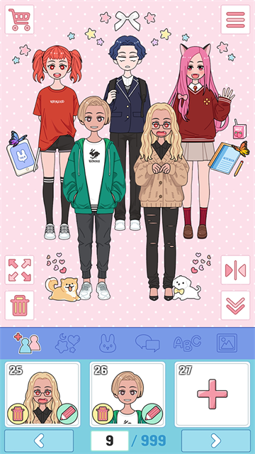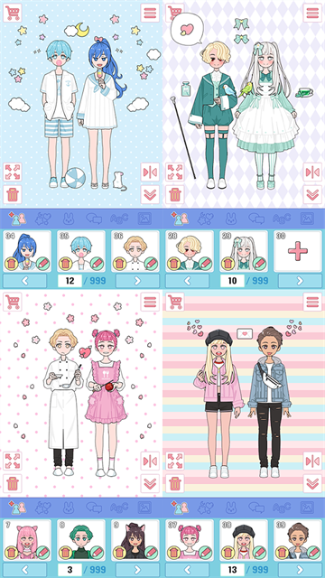 1、游戏采用轻松欢乐的换装玩法,玩家可以随时保存自己设计的完美造型,还能将其设置为手机屏保,每天都能欣赏到自己的创意作品。系统会自动记录玩家的搭配历史,方便随时回顾和修改。
