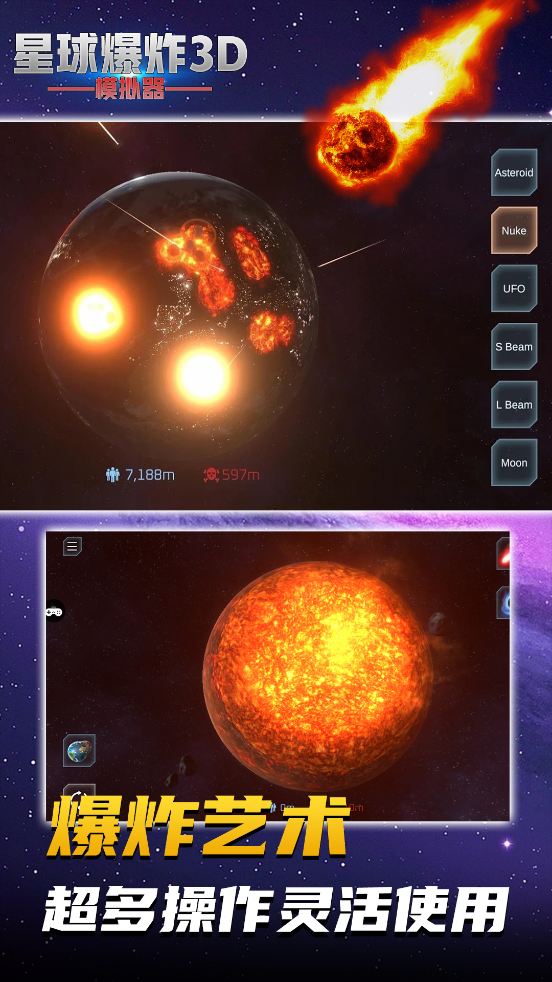 《星球爆炸模拟3D版》震撼来袭!这款游戏采用先进的3D技术,为玩家呈现星球爆炸的壮观场景。从星体碎裂到宇宙尘埃扩散,每个细节都栩栩如生。游戏新增数十颗特色行星,玩家可以自由选择目标进行破坏实验。无论是想体验毁灭快感,还是观察天体物理现象,都能获得独特乐趣。创新的解压玩法搭配逼真的视听效果,让你在碎片化时间里享受极致爽感。