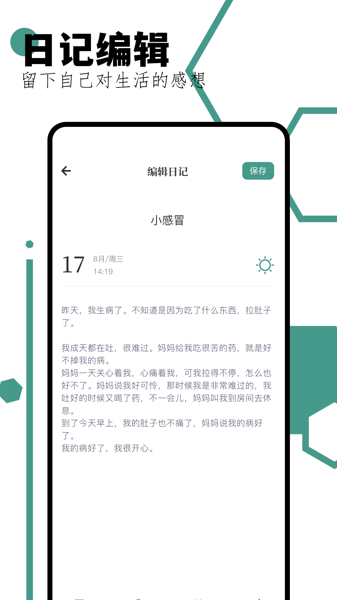 每日一记:通过智能提醒功能,帮助你养成每日记录的好习惯,不错过任何值得珍藏的瞬间;
