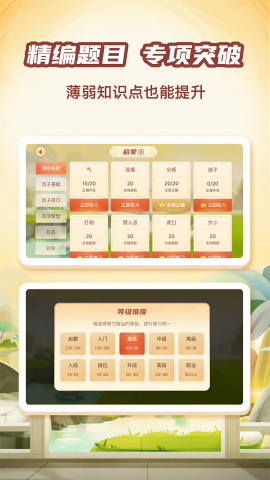 该软件提供系统化的在线围棋课程和丰富的围棋游戏,通过循序渐进的教学方式帮助用户扎实掌握围棋技巧。平台涵盖围棋、国际象棋、中国象棋和五子棋等多种热门棋类,适合各个年龄段的棋类爱好者使用。特别值得一提的是,软件内置了多级别AI对手系统,用户可以根据自身水平选择合适的难度进行对弈训练。针对不同学习阶段的用户,软件还准备了针对性的练习方案和学习计划,其中围棋、国际象棋和中国象棋三大棋类都有完整的教学体系,确保每位用户都能获得最适合的学习内容。