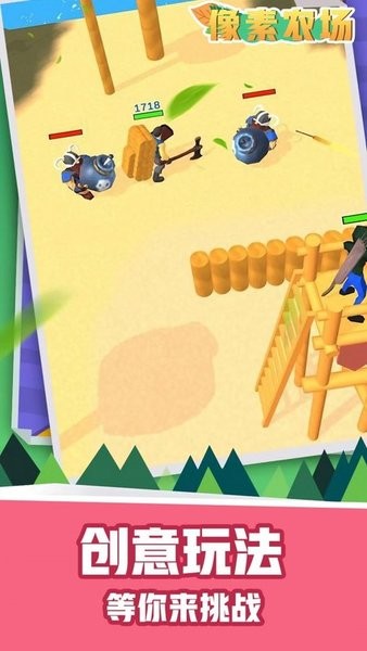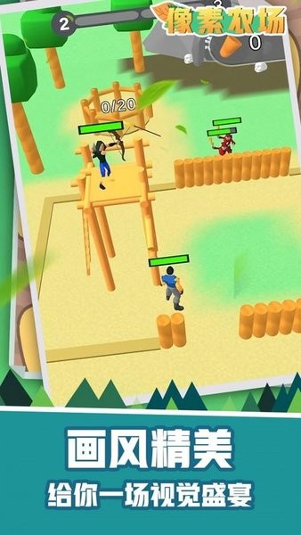 在像素农场的世界中,你将扮演一名森林冒险者,从一把斧头开始你的旅程。通过砍伐树木积累木材,你可以建造各种功能性建筑,或者将木材出售给商人换取金币。金币可用于购买实用道具或升级科技,提升你的实力。随着实力的增强,你可以外出冒险,击败凶猛的敌人获取丰厚奖励。建造箭塔和炮塔能帮助你更轻松地应对敌人挑战。当积累足够的资源后,你可以扩建领地,解锁更多建筑和科技,让你的农场日益壮大,最终成为这片土地上的强者。