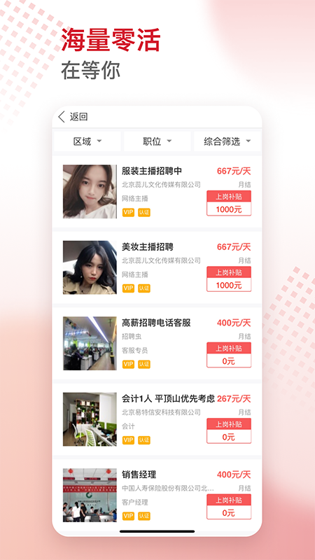 超级薪APP作为新一代灵活用工平台,具有以下显著优势:平台整合了各行各业的丰富资源,提供大量工作场景图片和视频资料,帮助求职者直观了解行业现状,做出更明智的职业选择。平台构建了专业活跃的职场社群,汇聚各行业精英,用户可以在这里交流经验、拓展人脉,快速融入适合自己的职业圈子。依托先进的大数据技术,平台开发了智能匹配系统,能够精准分析求职者技能与企业需求,实现高效对接,大幅提升求职成功率。目前服务已覆盖北京、上海、广州等一线城市及全国600多个大中城市。