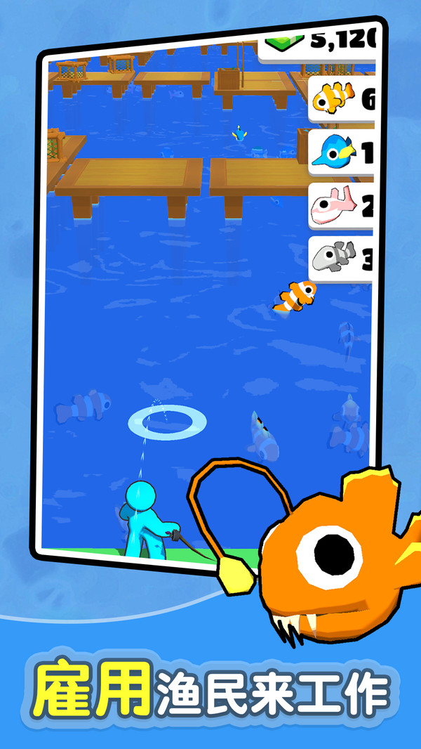 2、创新的员工管理系统,从初级渔夫到专业船长,玩家可以培养各具特色的助手团队,通过合理分配人力提升整体运营效率。