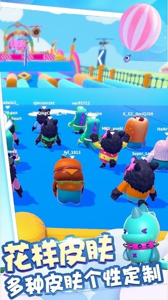 8.不同的皮肤有不同的游戏效果体验,每个关卡的设计都非常人性化。游戏提供了数百种个性化装扮,从可爱的动物造型到炫酷的机甲风格,让你的糖豆人独具特色。