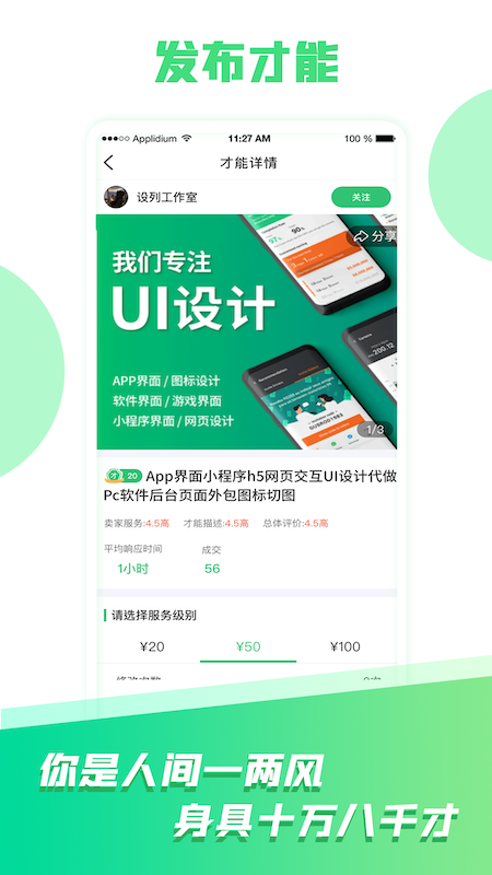 2.功能体系设计完善且实用,从才能展示到需求发布,从内容创作到个性推荐,形成完整的服务闭环。特别值得一提的是实时提现功能,资金到账速度快,手续费透明,让用户用得放心。各项功能操作流畅,新手也能快速上手。