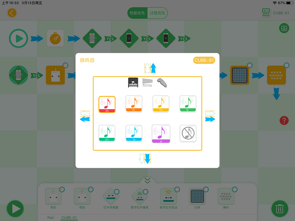 作为专为7-8岁儿童认知特点设计的编程启蒙平台,小方糖S1通过硬件与软件的创新结合重构了STEM教育场景。其核心采用模块化学习体系,将传感器、控制器等电子元件封装为颜色编码的安全模块,配合自主研发的图形编程引擎,将条件判断、循环嵌套等抽象概念转化为可拖拽的积木指令。特别设计的渐进式课程体系包含200+趣味项目案例,从让LED灯闪烁的基础任务到制作智能浇花系统的综合实践,每个阶段都融入故事情境和成就激励。系统还会智能记录孩子的操作轨迹,通过可视化数据帮助家长了解学习进度,形成完整的教育闭环。