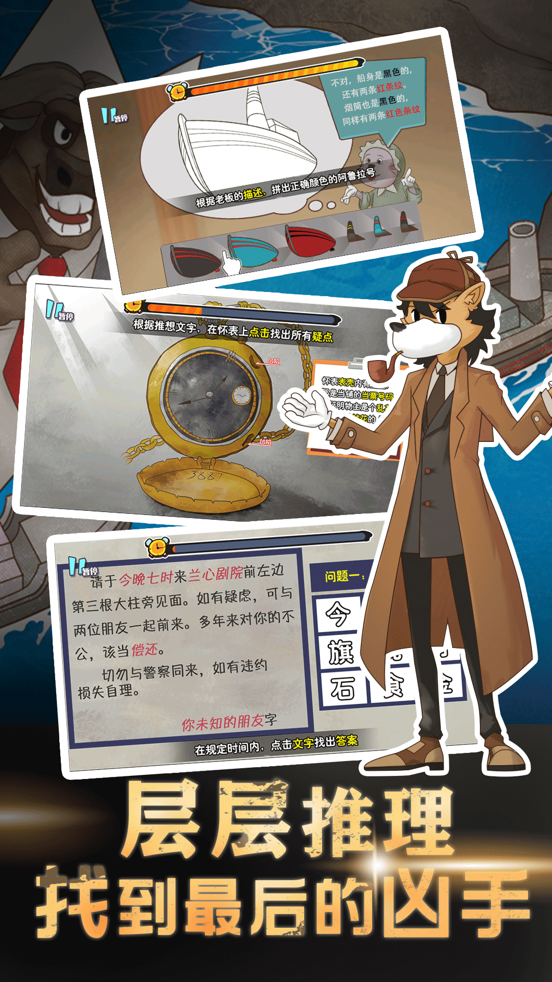 这是一款极具趣味性的点击式解谜手游,玩家将化身现代版福尔摩斯,在错综复杂的案件中展现非凡的推理才能。游戏采用独特的卡通风格呈现,主角虽然造型简约,但那双炯炯有神的眼睛仿佛能看透一切谎言。每个案件都像一本精心编织的侦探小说,玩家需要通过点击互动来收集线索、分析证据、审问嫌疑人。游戏特别注重细节刻画,从案发现场的物品摆放,到嫌疑人微妙的肢体语言,都可能成为破案的关键。随着游戏进程,玩家还能解锁各种侦探道具,让破案过程更具代入感。