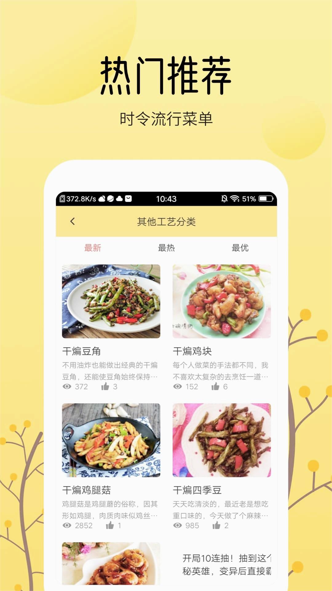 2、根据季节变化和饮食趋势智能推荐当季食材菜谱,春节年夜饭、夏日凉菜等专题策划提前两个月更新。用户评分系统帮助筛选出口碑最佳的家庭食谱。