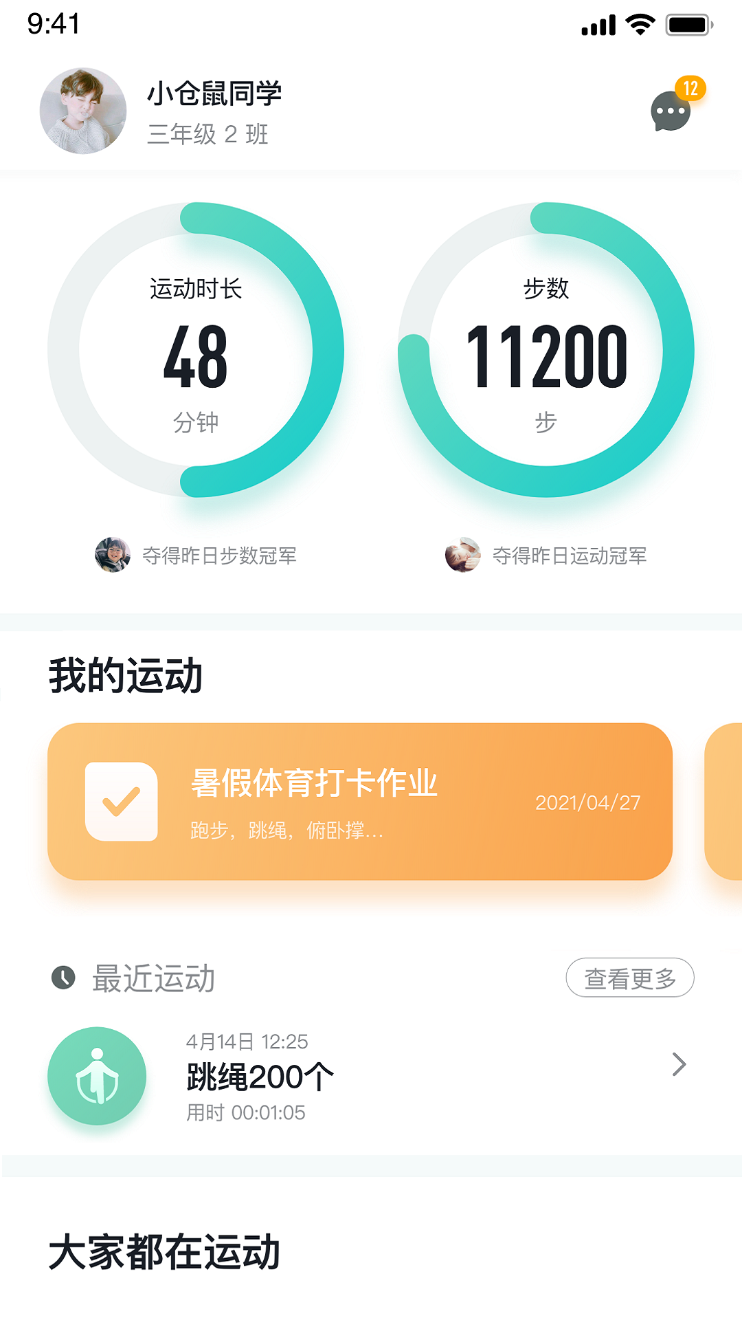 [步数/心率/榜单让运动更好玩] 实时同步班级运动排行榜,通过勋章奖励机制激发孩子的运动热情。