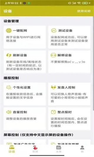1、该应用主要用于控制设备播放收款信息、闹钟、整点提醒等。功能全面,一机多用,大大提升设备使用效率。