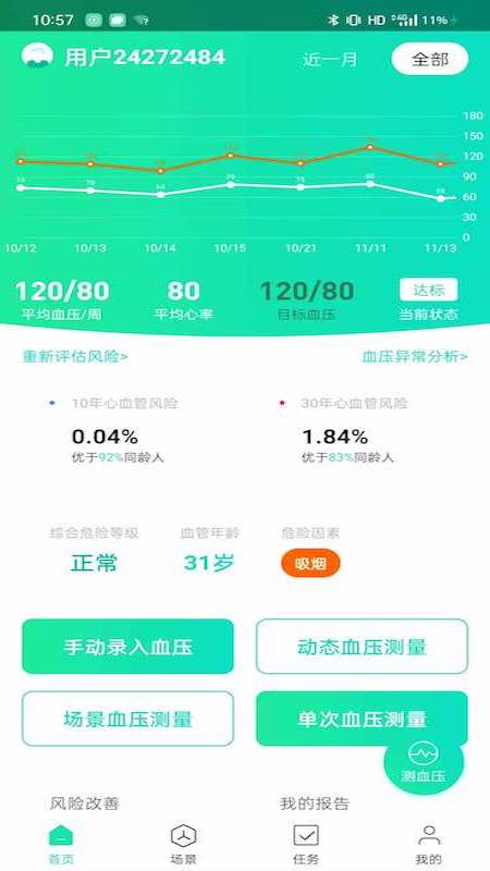 本应用为心血管病患者的智能助手,致力于通过科技手段提升健康管理水平。系统能够基于用户的血压、血脂、血糖等多项健康指标,运用专业算法精准评估心血管疾病风险,并为每位用户量身定制健康目标和改善方案。通过与长桑无袖带血压计的无缝连接,支持24小时动态血压监测及多种场景下的精准测量。所有健康数据都会自动生成清晰直观的表格和趋势图,方便用户在就诊时向医生完整展示健康状况,大幅提升诊疗效率。此外,应用还提供个性化的健康建议和用药提醒,全方位守护用户健康。