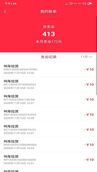 3、根据支出明细,迅速查看到每一个消费订单信息,包括时间、金额、司机等完整记录;