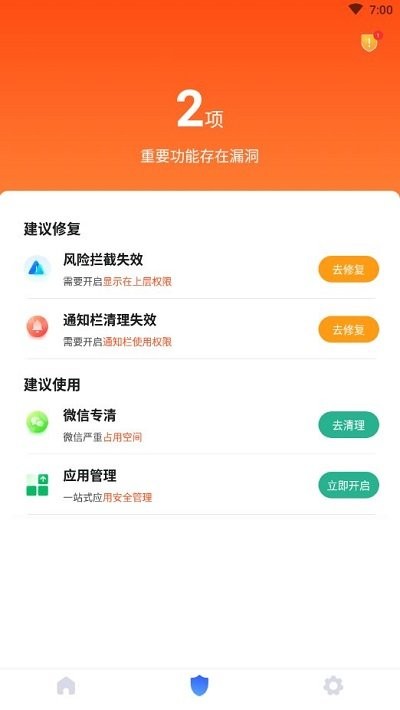 1、一键提速:提升手机运行速度,手机运行更流畅。通过智能分析当前运行的应用和服务,自动关闭不必要的后台进程,释放更多内存资源。提速效果立竿见影,让手机重获新生般的流畅体验。