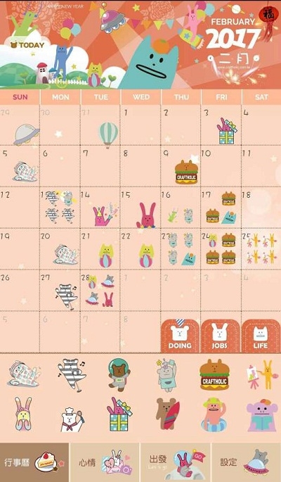 * 提供三大系列可爱的宇宙人主题贴图,用户可以根据不同事件类型选择适合的贴图来标记日历中的重要事项