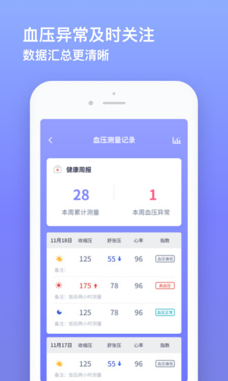 【数据统计】:智能分析历史测量数据,自动标记异常数值,及时提醒用户关注血压波动。