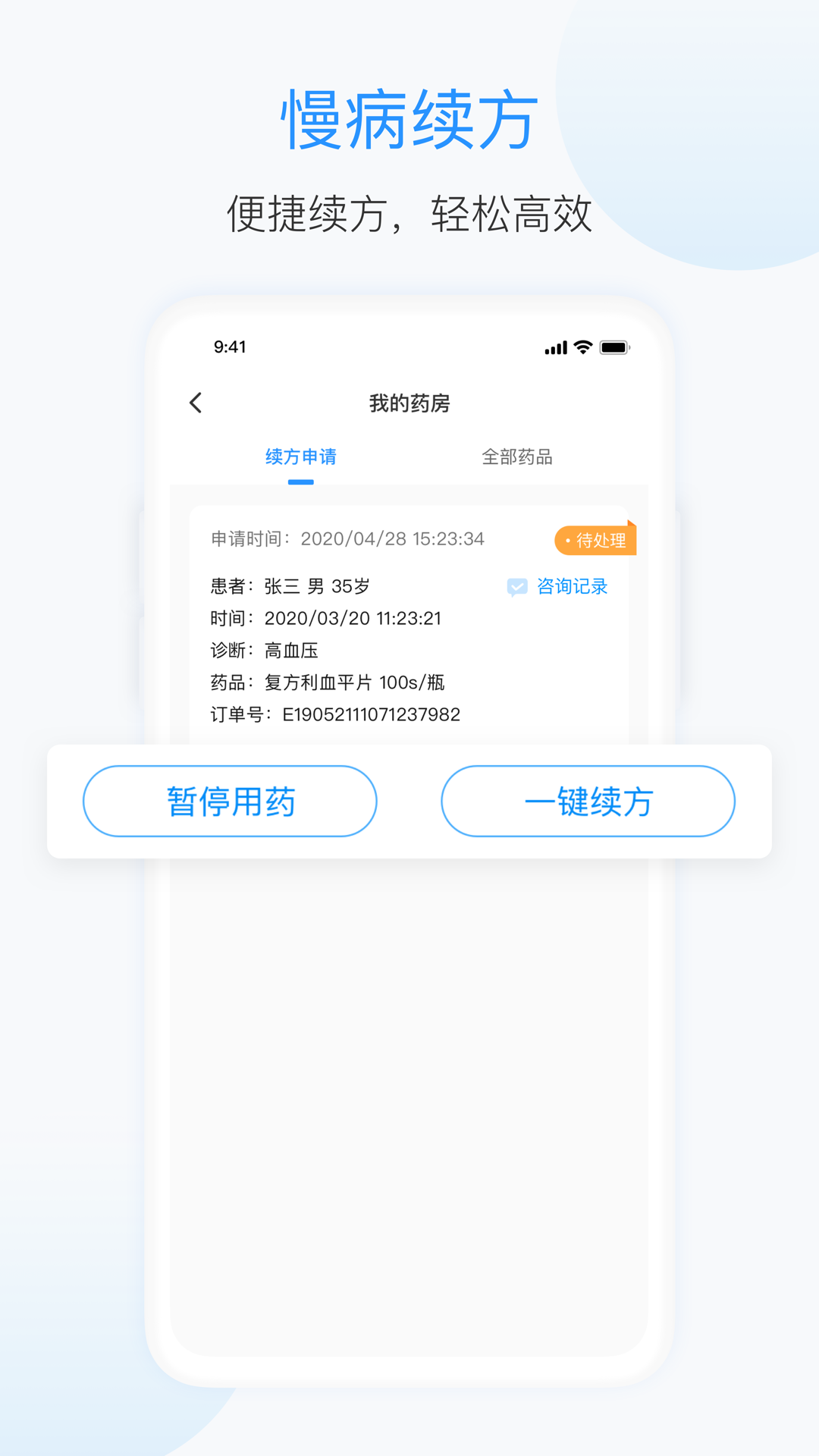 针对慢性病患者设计的一站式续方服务,简化复诊流程,支持长期处方管理,确保用药连续性,同时满足合规要求,减轻医生工作负担。