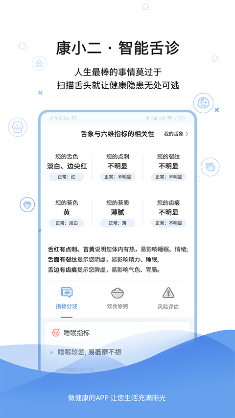 软件采用智能分析技术,为用户详细解读扫描检测到的各项身体健康数据,包括舌象特征与健康指标的关联性分析,让用户能够更深入地理解检测结果的临床意义,从而做出更明智的健康决策。